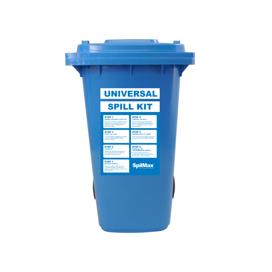 Workplace Spill Kit Bins are designed to act as portable spill response stations for quick and effective spill control. Ideal for areas where liquids are stored, handled, or transferred, these bins can be easily wheeled directly to the spill location. The durable wheelie bin design supports safe storage and clear identification, helping workplaces maintain effective spill response and proper waste segregation.