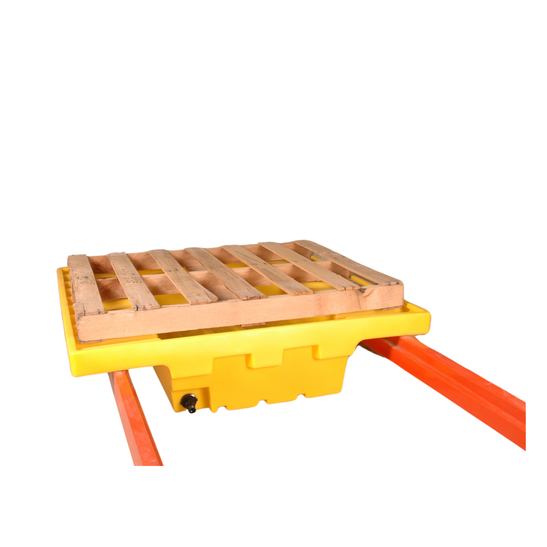 This all-polyethylene sump offers a 250 litre capacity and fits standard industrial racking. It works with most wooden pallets and includes an optional drain valve for easy liquid removal.